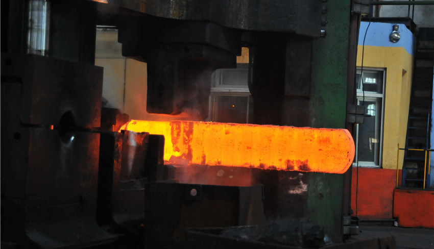 鍛造扁鋼時的情景